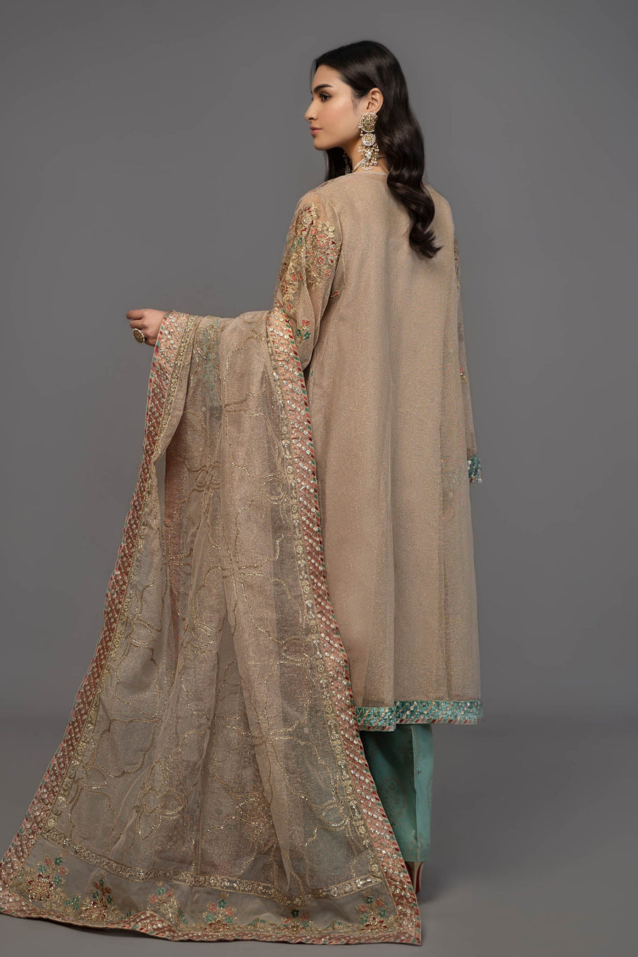 Embroidered Zari Net Dupatta With Organza Pallu